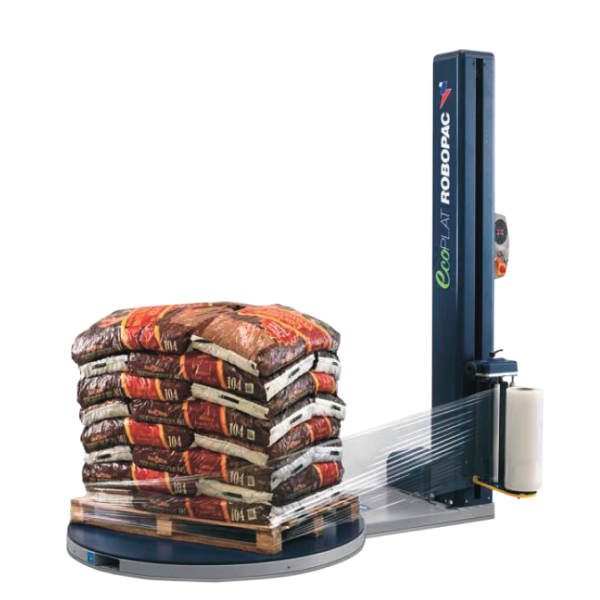 Полуавтоматический палетоупаковщик с поворотным столом без функции предварительного растяжения плёнки, предназначенный для вертикальностоящих грузов. Самый базовый и недорогой аппарат в линейке паллетообмотчиков торговой марки Robopac.