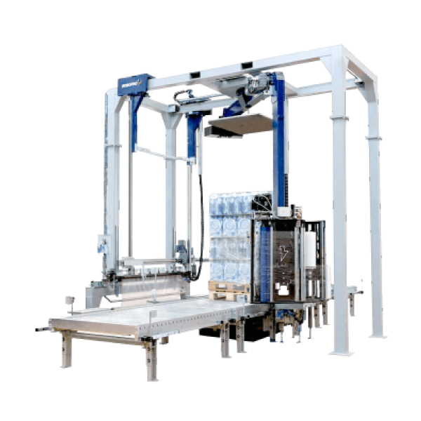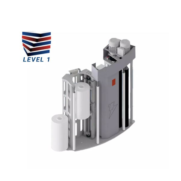 Автоматический паллетообмотчик с поворотным кронштейном, подходит для упаковки грузов с острыми и неравномерными краями, это возможно благодаря использованию сразу двух бобин с плёнкой в процессе упаковки, которые укладывая плёнку внахлест препятствуют её разрыву. Имеет устройство Top Inside для укрывая груза сверху дополнительным куском более плотной плёнки и верхний прижим для стабилизации неустойчивых грузов. Может жгутировать плёнку для лучшего скрепления груза друг с другом и с паллетой, есть возможность использовать плёнку с перфорацией.