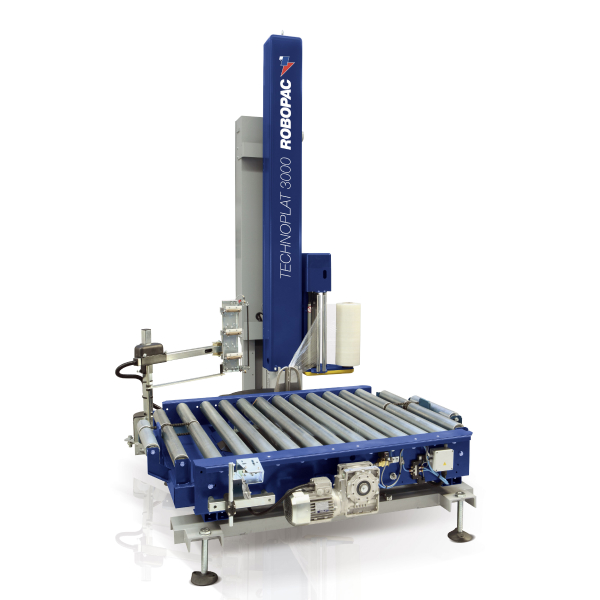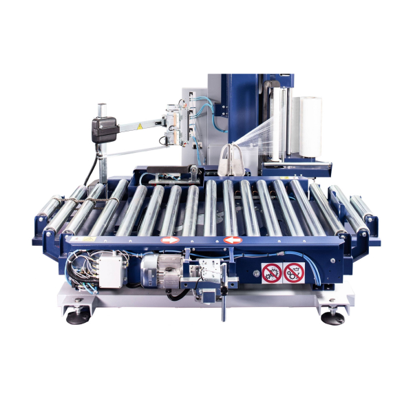 Автоматический паллетообмотчик с роликовым поворотным столом, с опцией компенсации натяжения плёнки по всей высоте поддона, настраиваемым пре-стретчем от 100 до 300% и запайкой плёнки в конце цикла обмотки. Имеет сенсорную систему управления.
